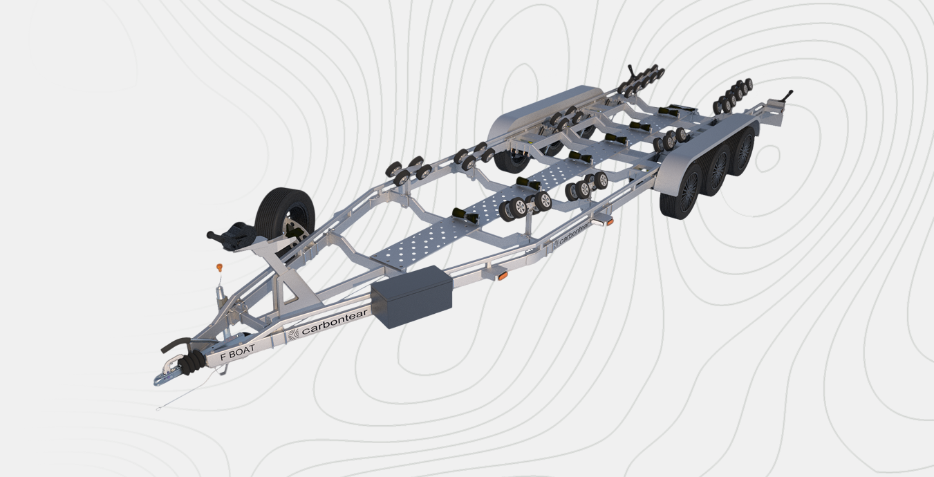 CarbonTear F-Boat – Triple-Axle Mega-Load Trailer. Professional transport of the largest boats – up to 11 m in length. The most powerful trailer in the Carbontear range, designed to transport heavy and massive vessels with a GVW of up to 3500 kg.